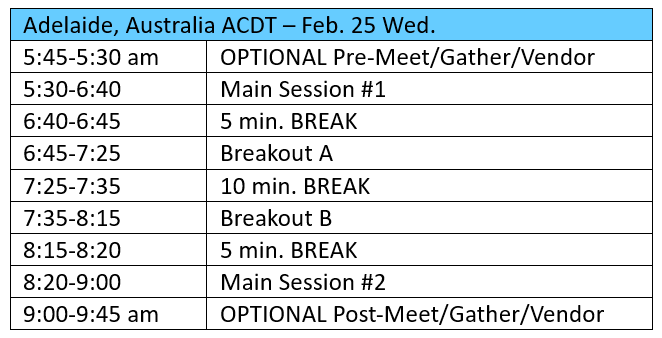 Note - We have 10 Fantastic Breakout Speakers from around the world. Please stay tuned for a complete list with Titles and Descriptions by January 20.