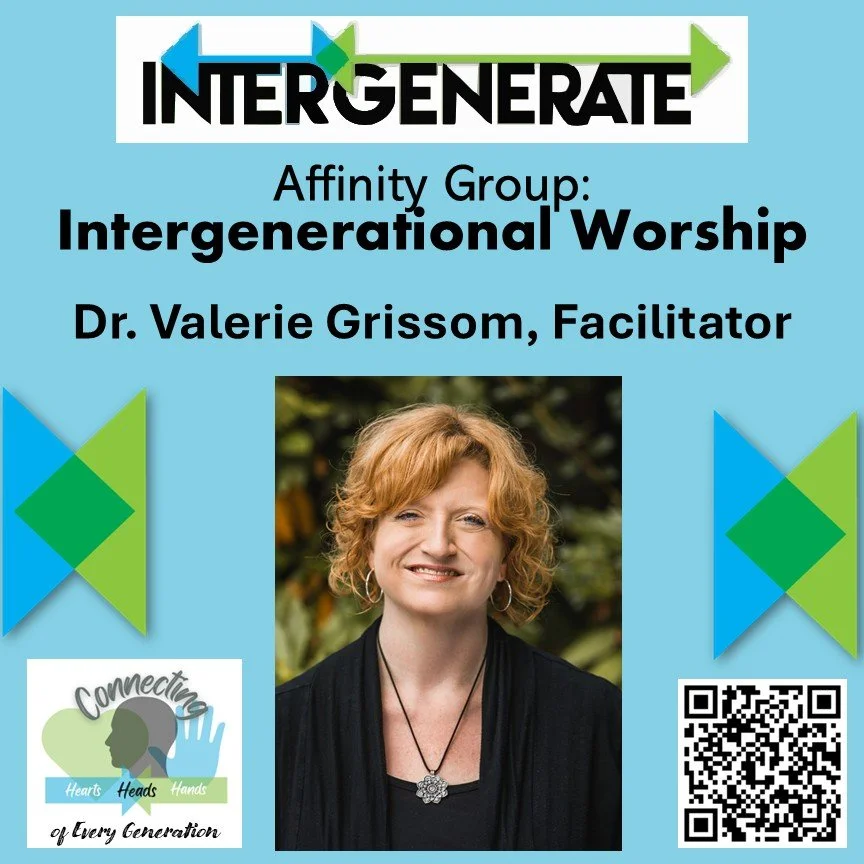Valerie M. Grissom, MDiv, DWS, is certified for ordination as Minister of Word and Sacrament in the Northwest Coast Presbytery (PC-USA), near Seattle, Washington. She serves as Chair of the InterGenerate Team. Valerie is the editor of All Ages Becoming: Intergenerational Practice in the Formation of God's People. As a worship leader and pastor for over 20 years, Valerie is passionate about worship renewal in the Church. To find out more about Valerie’s research, writing, speaking, coaching, and mentoring regarding intergenerational and intercultural worship, visit valeriemgrissom.com.